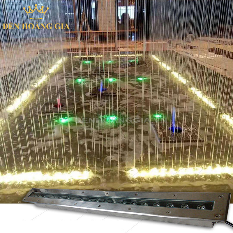 Đèn led thanh âm nước là mẫu đèn được thiết kế theo chiều dài với các kích thước phổ biến là 0,3 mét, 0.6m, 1m. Thân đèn được cấu tạo kín khít với tiêu chuẩn IP68 và sử dụng điện áp 12-24V an toàn. Loại đèn này thường được lựa chọn để chiếu sáng cho các ứng dụng thác nước trên tường. Đem lại hiệu ứng chiếu sáng bắt mắt cho những dòng nước chảy từ trên cao xuống.