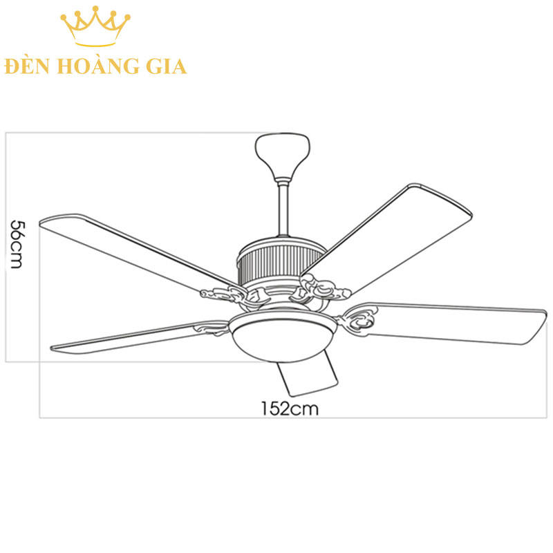 Quạt trần đèn 5 cánh cao cấp Kaiyo OKA-181-MBK sở hữu kích thước đường kính sải cánh dài 1520mm và chiều cao tới trần nhà 510mm phù hợp sử dụng lắp đặt cho các căn phòng có diện tích từ 15 – 21m2. Tuy nhiên bạn cũng nên căn cứ vào độ cao khoảng cách từ mặt đất tới trần nhà của căn phòng đó là bao nhiêu để tùy chọn sử dụng ty nhắn hoặc ty dài để lắp cho quạt trần đèn Kaiyo OKA-181-MBK.