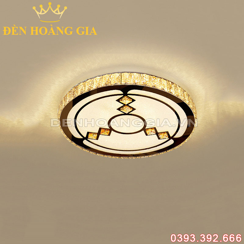 Những mẫu đèn ốp trần trang trí hình tròn hình vuông đơn giản này đang được khá nhiều người yêu thích và lựa chọn. Tùy theo sở thích các bạn có thể lựa chọn mẫu đèn mâm ốp trần 1 tầng đơn giản hoặc mẫu 2 tầng độc đáo. Đèn được thiết kế kết hợp giữa chất liệu mica hiện đại và pha lê đầy tinh tế. Kích thước của đèn là D500, phù hợp lắp đặt cho các không gian khác nhau như phòng khách, phòng bếp, phòng ăn, phòng ngủ, studio,…