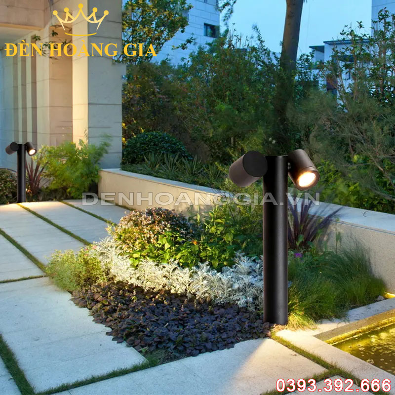 - Đèn nấm sân vườn 2 đầu được lắp dọc lối đi sân vườn. 1 đầu rọi về phía đường đi, đầu còn lạ rọi về phía bãi cỏ