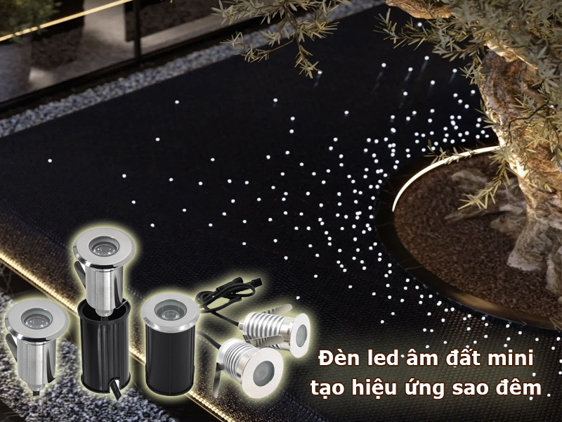 Ứng dụng lắp đèn LED âm đất mini tạo hiệu ứng sao đêm đang trở thành xu hướng thiết kế cảnh quan cao cấp cho sân vườn, lối đi và không gian ngoài trời. Với kích thước nhỏ gọn cùng ánh sáng điểm tinh tế, đèn được bố trí rải đều trên bề mặt nền tối để mô phỏng bầu trời đầy sao lung linh vào ban đêm. Hiệu ứng này không chỉ mang lại vẻ đẹp nghệ thuật độc đáo mà còn giúp không gian trở nên sang trọng và thu hút hơn rõ rệt.
