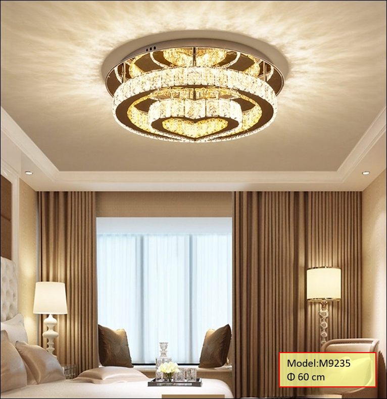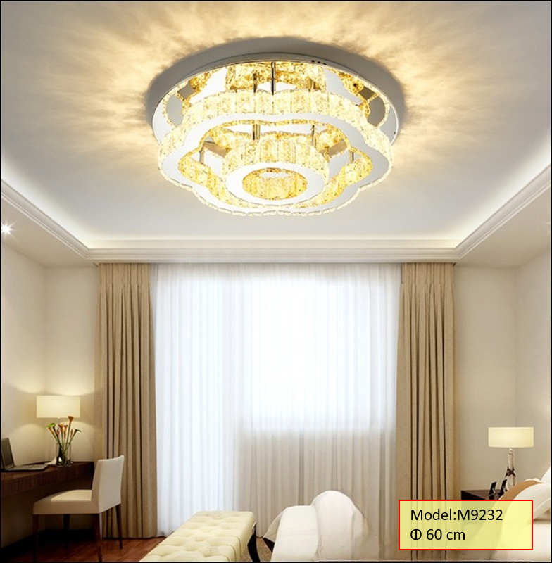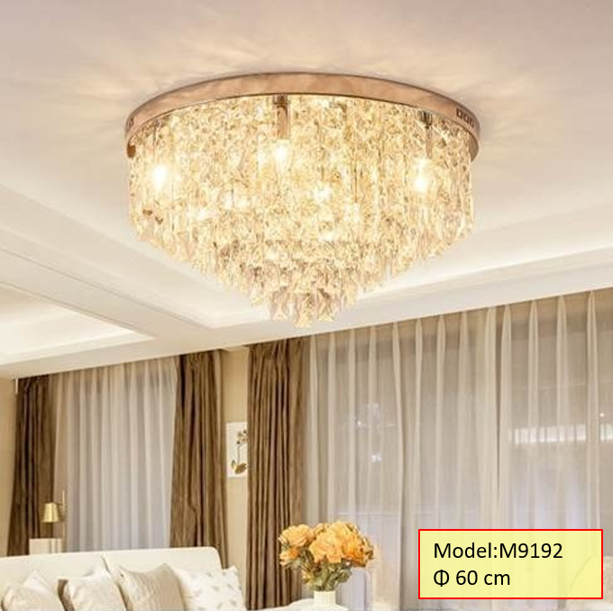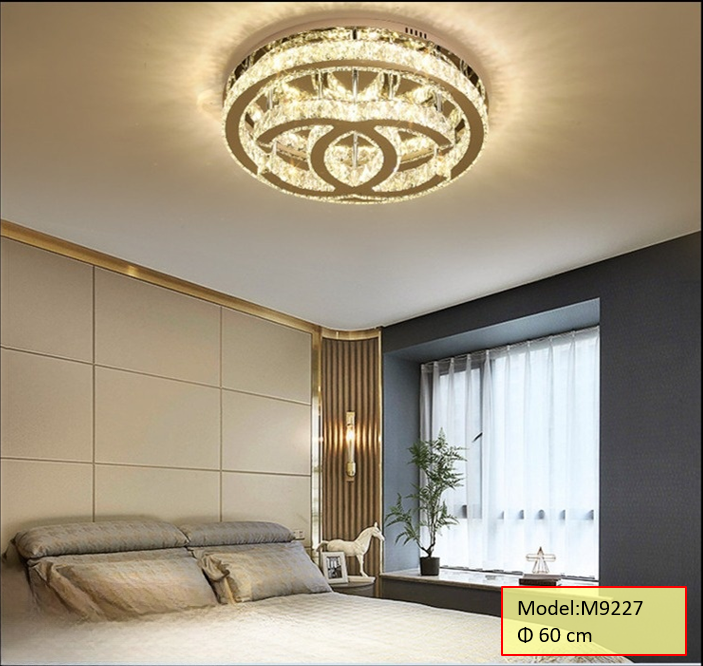 Đèn mâm pha lê Ø60cm là một trong những dòng đèn ốp trần được ưa chuộng nhất hiện nay nhờ sự kết hợp hài hòa giữa tính thẩm mỹ và công năng chiếu sáng. Với kích thước tầm trung, không quá lớn cũng không quá nhỏ, mẫu đèn này dễ dàng ứng dụng trong nhiều không gian khác nhau, từ phòng khách, phòng ngủ đến căn hộ chung cư hay các khu vực kinh doanh như spa, quán cà phê.