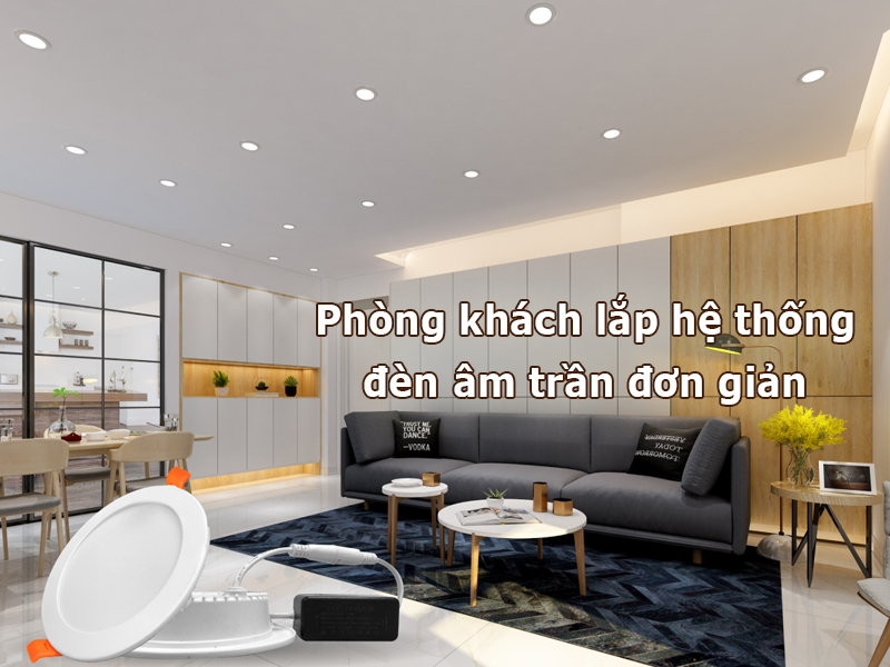 - Phòng khách nhỏ: Lắp đèn mâm + đèn LED âm trần