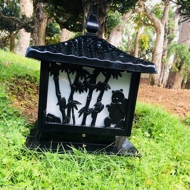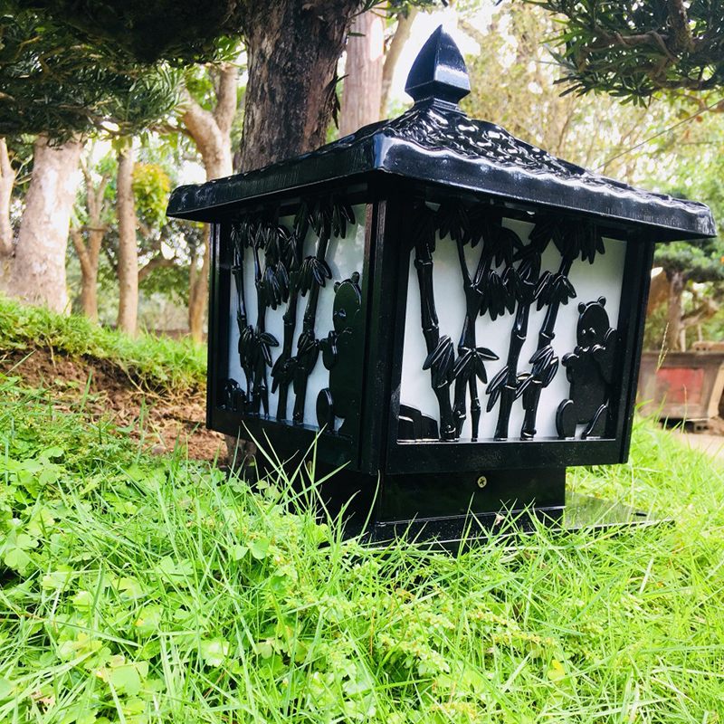 Ngoài phiên bản nhôm đúc sơn giả đồng, mọi người cũng có thể tham khảo thêm mẫu đèn trụ cổng cây trúc màu đen dưới đây: