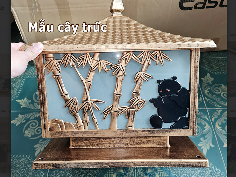Điểm nổi bật của mẫu đèn này nằm ở họa tiết cây trúc được cắt hoặc đúc tinh xảo trên thân đèn. Những đường nét thanh mảnh, mềm mại của thân trúc và lá trúc tạo nên vẻ đẹp thanh thoát. Khi đèn được bật vào ban đêm, ánh sáng LED sẽ xuyên qua các họa tiết, tạo ra hiệu ứng bóng đổ rất đẹp, mang lại không gian ấm cúng và gần gũi với thiên nhiên.