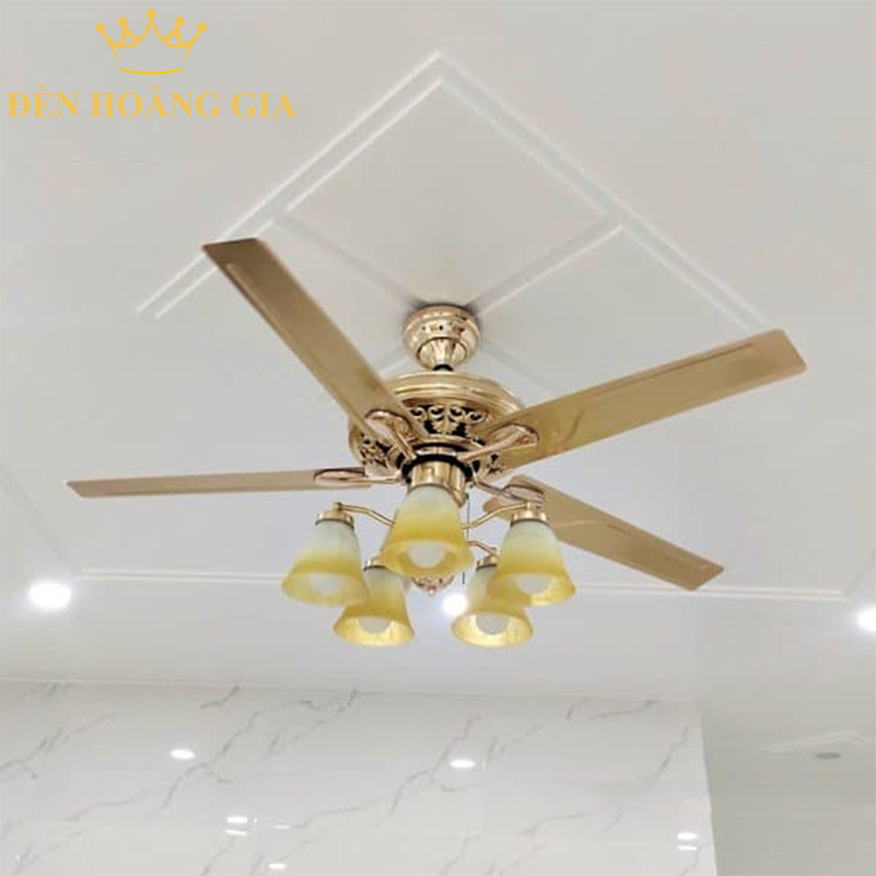 - Quạt trần đèn 5 cánh: gió êm, tản đều, tạo cảm giác thoải mái, lý tưởng cho phòng ngủ, phòng khách sang trọng.