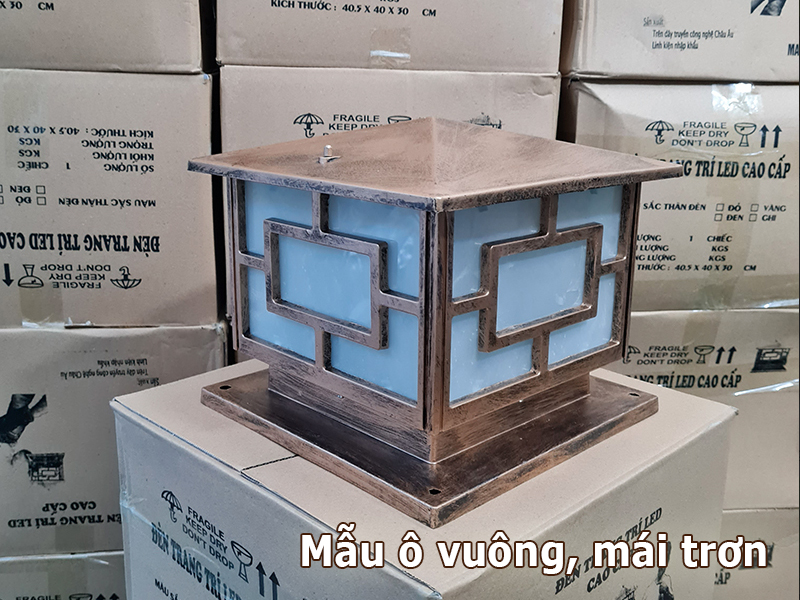 Phần thân đèn được làm từ nhôm đúc cao cấp, sau đó được sơn tĩnh điện giả đồng giúp bề mặt đèn có màu sắc sang trọng và cổ kính. Lớp sơn này không chỉ tăng tính thẩm mỹ mà còn giúp đèn chống oxy hóa, chống gỉ sét và chịu được các điều kiện thời tiết ngoài trời. Nhờ vậy, đèn trụ cổng có thể sử dụng bền bỉ trong thời gian dài mà vẫn giữ được vẻ đẹp như ban đầu.