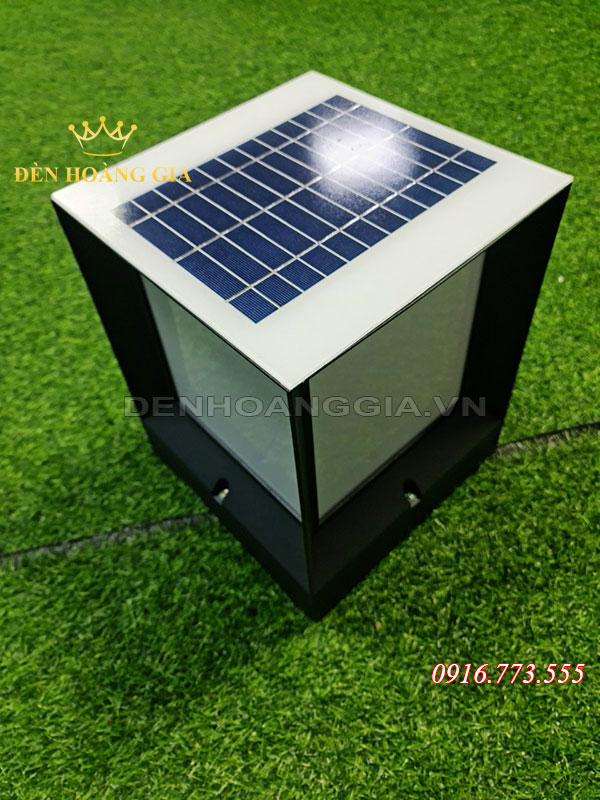 - Phía trên thân đèn sẽ là chóp đèn. Bản chất đây cũng là một phần của thân đèn. Phần chóp này, có thể có hoặc không. Chóp đèn của đèn trụ năng lượng mặt trời thường được cách điệu với hình mái ngói. Bên trên chóp đèn được gắn những tấm pin năng lượng mặt trời. Mặt trong của chóp đèn là những sợi dây kết nối tấm pin NLMT với ác quy dự trữ năng lượng. Từ ác quy sẽ kết nối với một mạch in chứa chip led. Đây chính là bộ phận phát sáng của đèn trụ NLMT.