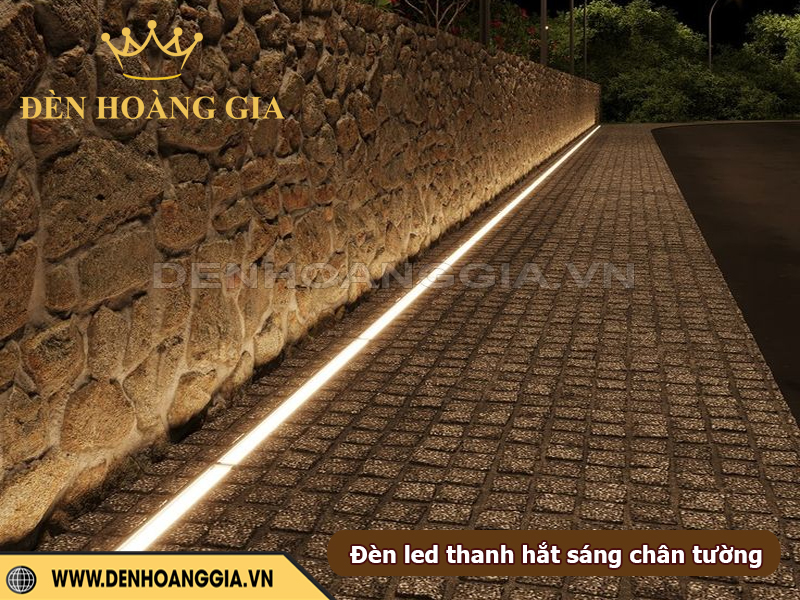 - Hắt chân tường: Lắp sát chân tường để làm nổi bật texture gạch, đá, bê tông.