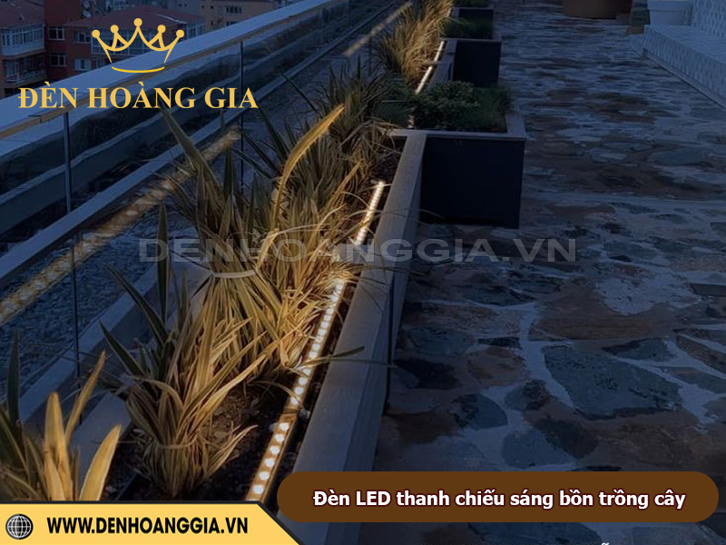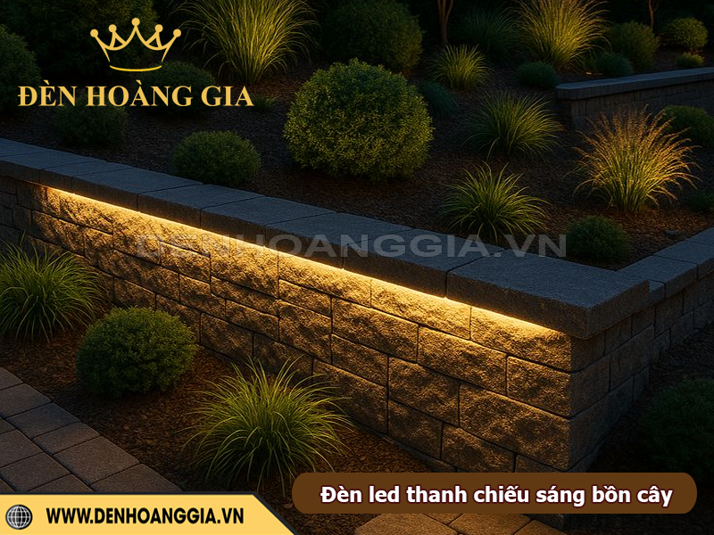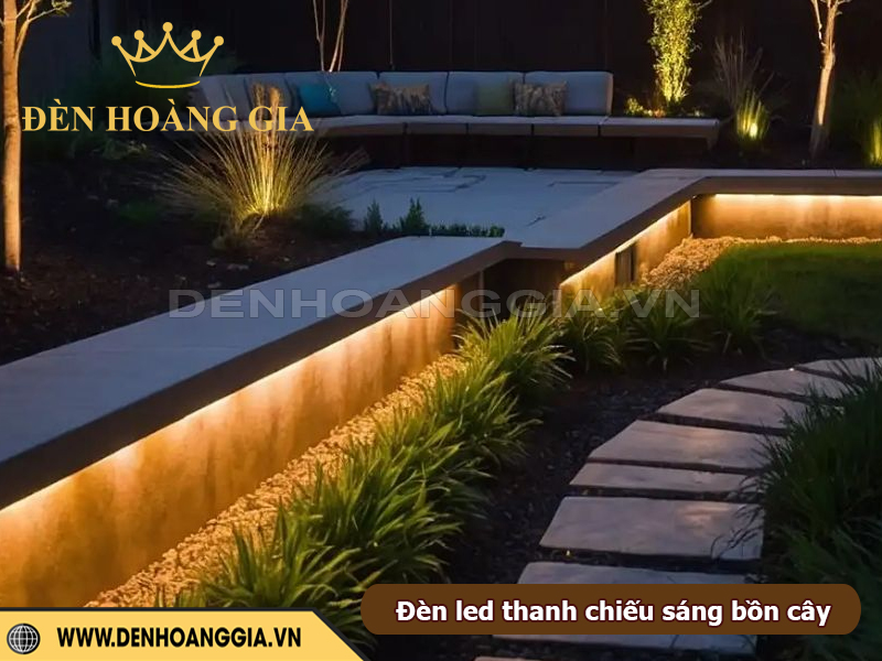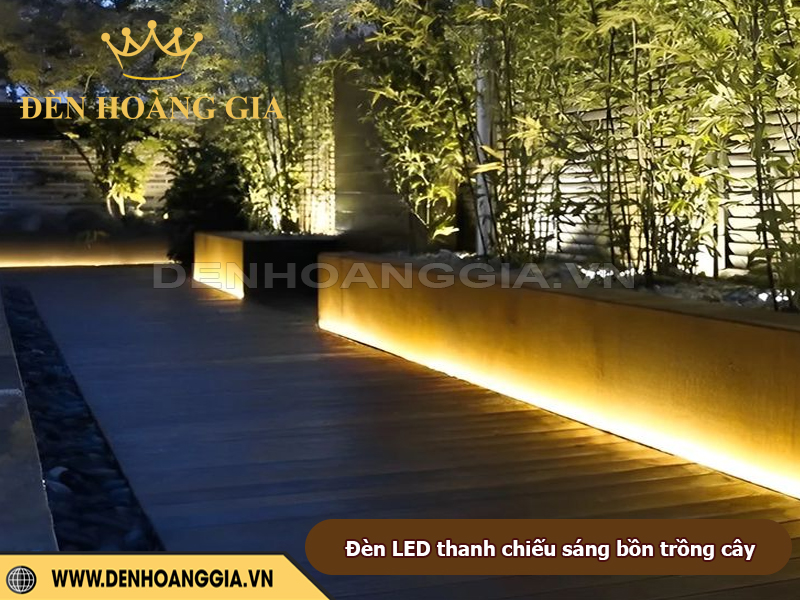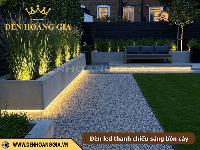 Đèn LED thanh là giải pháp lý tưởng để tạo hiệu ứng chiếu hắt mềm mại quanh bồn cây và khu vực ghế ngồi, giúp sân vườn trở nên ấm cúng và có chiều sâu hơn vào ban đêm. Nhờ ánh sáng tuyến tính đều và khả năng lắp ẩn khéo léo, đèn không gây chói mà vẫn làm nổi bật đường cong bồn cây, mặt ghế, vật liệu trang trí và các chi tiết cảnh quan. Đây cũng là cách tăng trải nghiệm thư giãn cho người sử dụng, biến góc sân vườn thành không gian nghỉ ngơi nghệ thuật và an toàn.