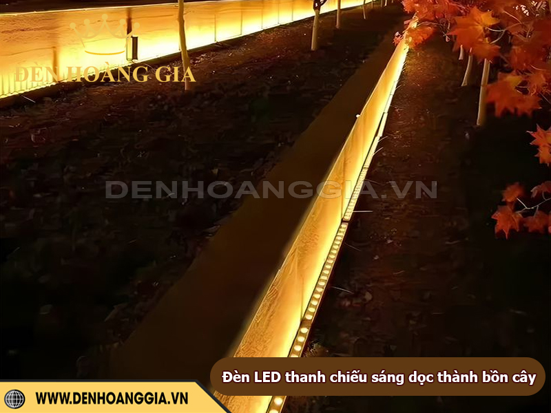 - Hắt viền quanh bồn cây: Lắp ẩn sát mép bồn để tạo đường sáng nhẹ nhàng bao quanh thân cây.