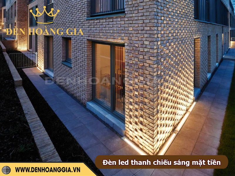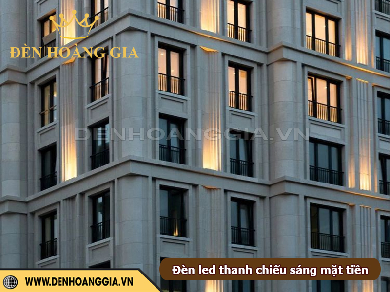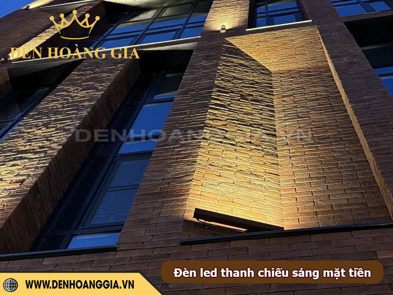 Đèn LED thanh là lựa chọn lý tưởng để tạo hiệu ứng hắt sáng tinh tế cho mặt tiền tòa nhà. Giúp công trình nổi bật cả ban ngày lẫn ban đêm mà không gây chói hay phá vỡ cấu trúc kiến trúc. Nhờ ánh sáng tuyến tính đều, mỏng và bám sát bề mặt tường, giải pháp này phù hợp từ nhà phố, biệt thự đến khách sạn, showroom,… Mang lại cảm giác hiện đại và sang trọng. Việc bố trí đúng kỹ thuật sẽ giúp nhấn mạnh đường nét, tăng chiều sâu cho không gian và thể hiện đúng phong cách thiết kế của tòa nhà.