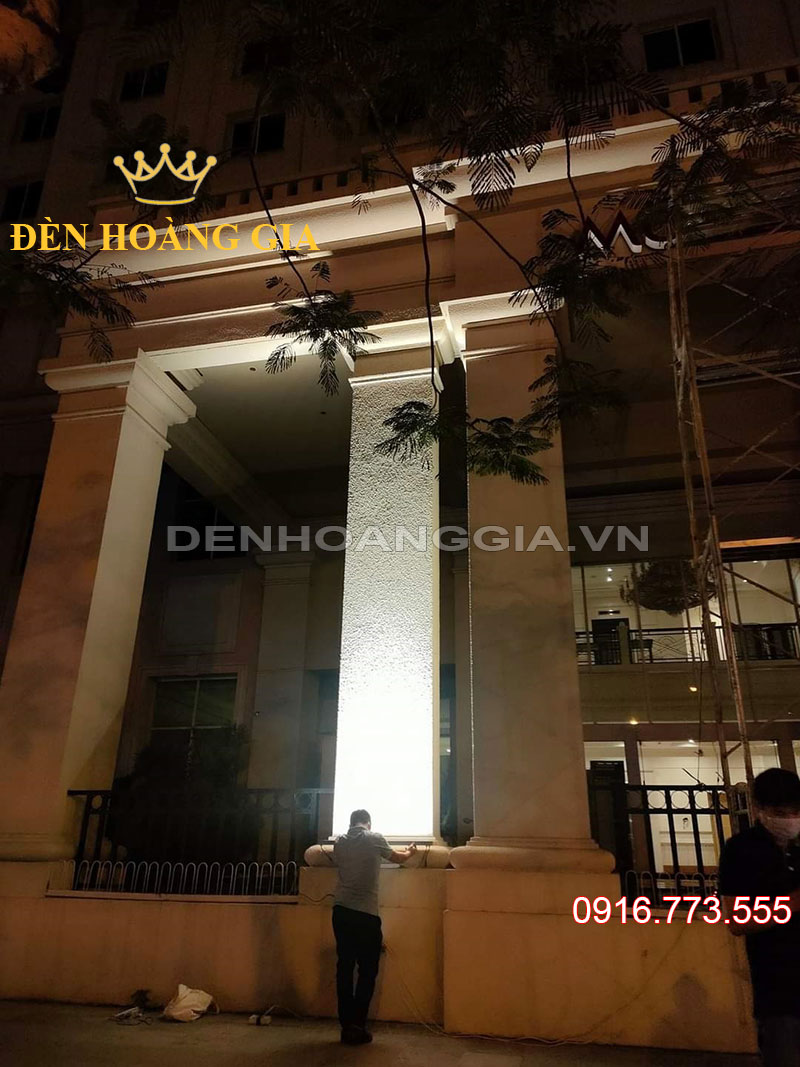 Có rất nhiều công trình kiến trúc hiện nay được thiết kế cột trụ. Chúng không chỉ có tác dụng chống đỡ. Mà phần lớn được sử dụng với mục đích trang trí. Bởi vậy, muốn những cột trụ nổi bật trong đêm tối thì không thể thiếu đi hệ thống đèn chiếu sáng ngoài trời. Một trong những cách hiệu quả nhất chính là lắp đèn led chiếu cột. Tuy nhiên, nên sử dụng loại đèn nào để chiếu cột thì không phải ai cũng biết. Đặc biệt là đối với những cột trụ lớn. Trong nội dung dưới đây, hãy cùng Đèn Hoàng Gia tìm hiểu về giải pháp chiếu sáng cho các cột trụ cỡ lớn nhé!