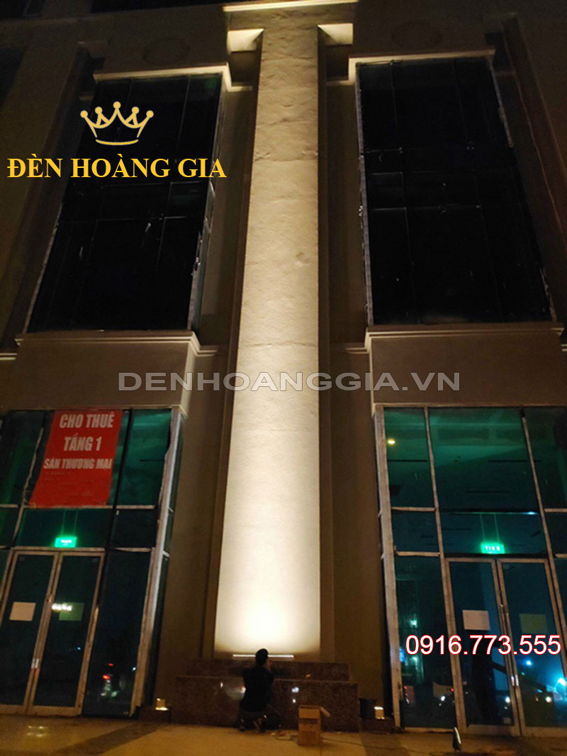 Đối với chiếu sáng mặt dựng tòa nhà, sẽ không khó bắt gặp những trường hợp vách tường cao thẳng tắp. Hoặc những trụ bổ tường nối liên tiếp giữa các tầng. Với các ứng dụng như vậy, cột trụ thường là hình vuông hoặc vách tường thường có bề ngang khá rộng. Sẽ có 2 phương án để bạn lựa chọn trong trường hợp này. Đó là lắp đèn led rọi cột công suất lớn hoặc lắp đèn led thanh chiếu hắt tầm xa. Hãy cùng xem một số công trình lắp đèn led chiếu cột dưới đây.